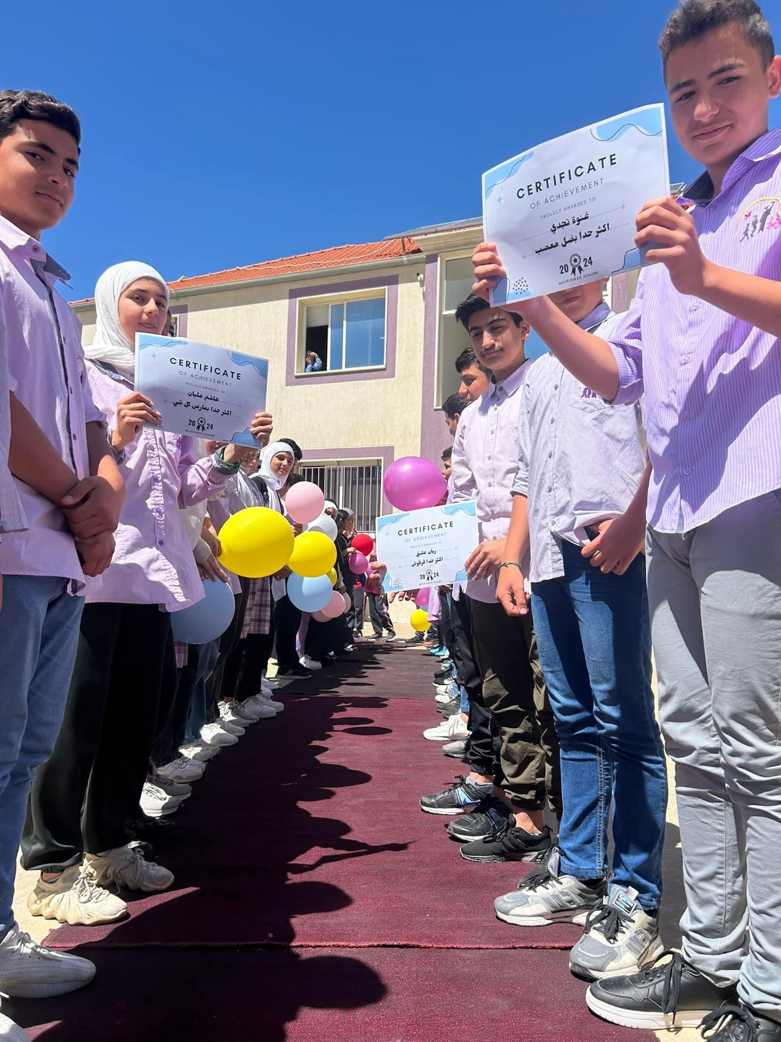 ٢٩ نجمة ونجمًا ودّعتهم الثّانويّة اليوم قبل بدء التّحضيرات للامتحانات الرّسمية وذلك بعد مشوارٍ طويلٍ فيها كان مليئًا بالحياة ، ضجّت بهم أروقةُ وملاعبُ الثانويةِ طيلةَ رحلتهم التي أقلّ ما يُمكن للثانويّة أن تقدّمه لهم هو الإحتفاء بهم وتوديعهم بالمرور عبر السّجاد الأحمر لتختلطَ دموعُهم مع صفيقِ رفاقِهم في المرحلة الثّانوية وأمام معلميهم ومديرهم كان مرورهم كالأبطالِ الشّجعان الذي يقبضون على النّصر والنّجاح في زمن الصّعوبات ، وقد غرسَ طلّاب الثّالث الثّانوي من خلال طليع دفعتهم محمد قدوح شجرةً في مدخلِ الثّانوية لتخلّد عبر الزّمن عبارةً: مررْنا من هنا .