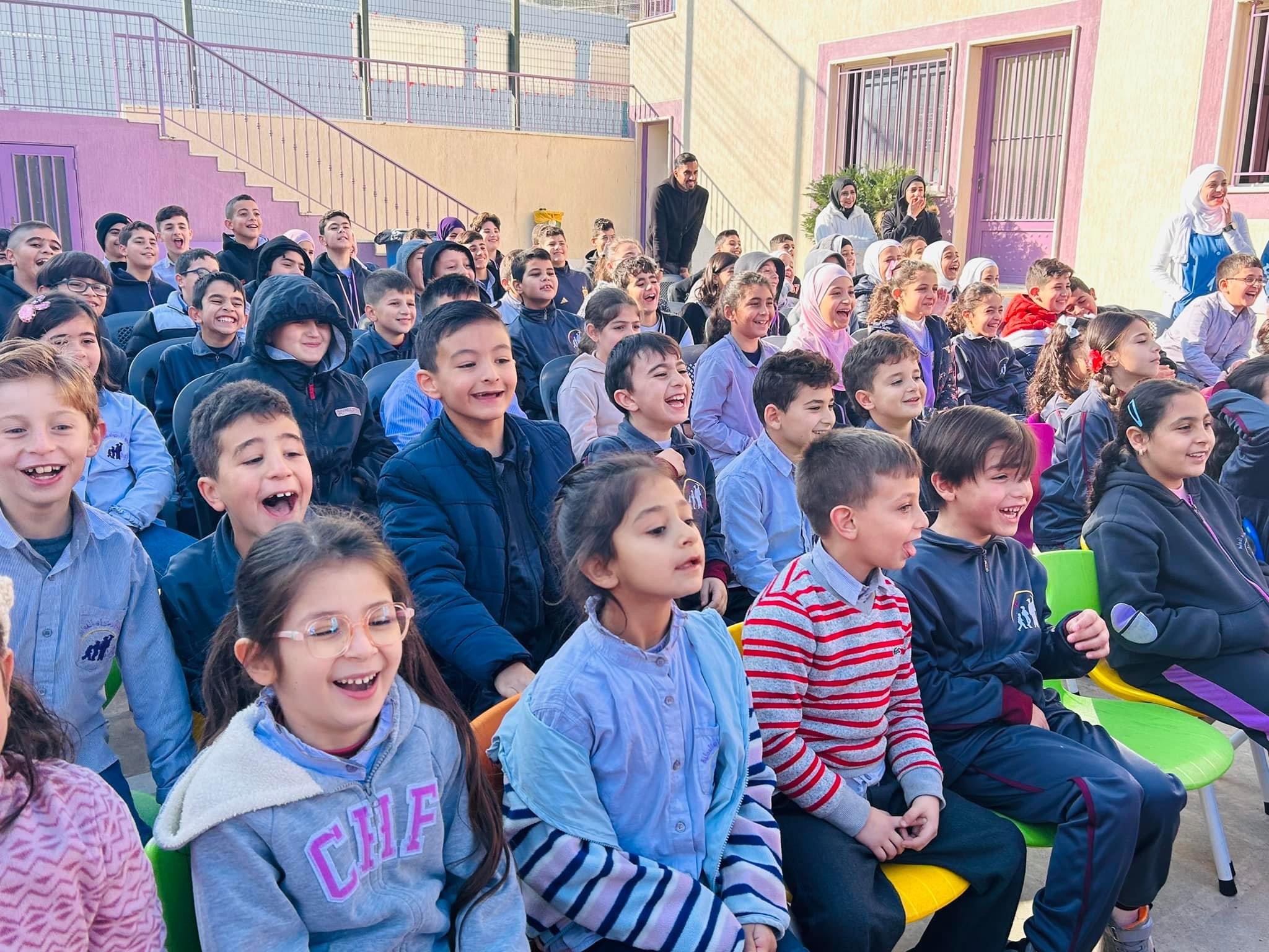 باستقبالٍ حاشد وبأجواءٍ مليئةٍ بالضّحكات، زرع الفنان الكوميدي القدير نزيه يوسف (الملقب ب وجيه) وفرقته ، ما كان ينتظرُهُ طلابُ الرّوضة والحلقةِ الأولى والثّانية من عرضٍ مسرحيّ رائعٍ وممتعٍ ومسلٍّ، مُطلقًا من ثانويّة الأرجوان الدّوليّة أرقى العروضِ الهادفةِالتي تُحاكي الصّحة الغذائيّة والمدرسيّة... # عرض ولا بالأحلام..# صُنّاع _ الحياة. # الأرجوان عالية _ عالية .
